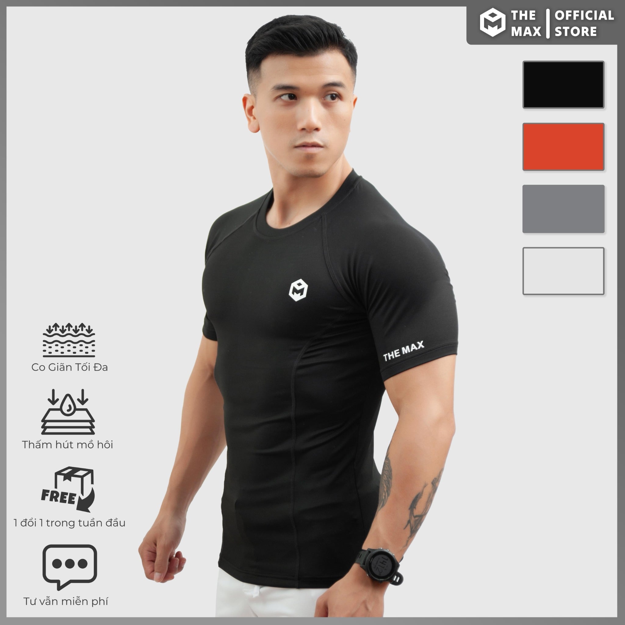 Áo cộc tay ôm body vải thun lạnh phối lưng The Max G08185